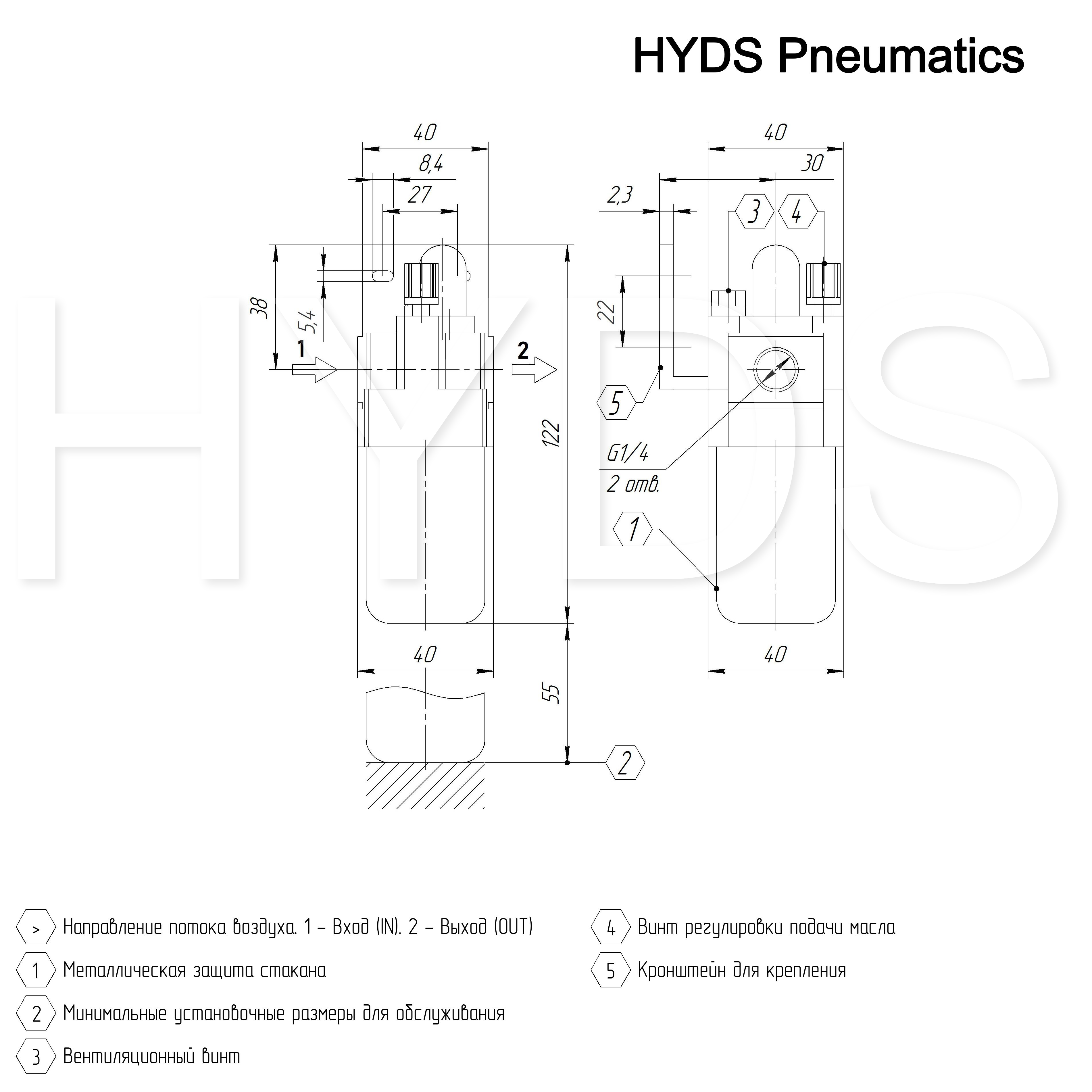 Рекомендуемое масло ISO VG 32. Начало распыления при 15 нл/мин