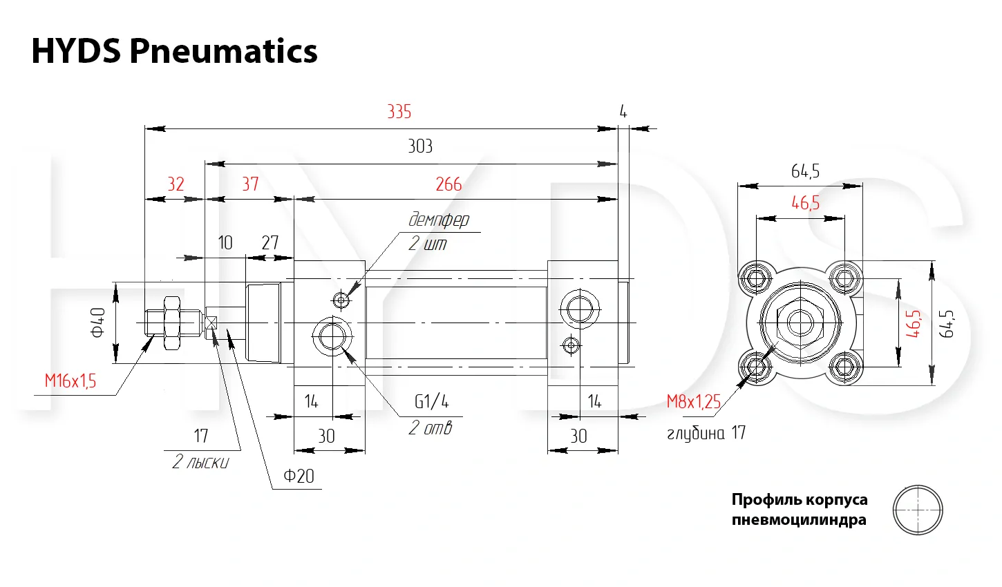 Красным выделены значения, на которые стоит обратить внимание при выборе пневмоцилиндра