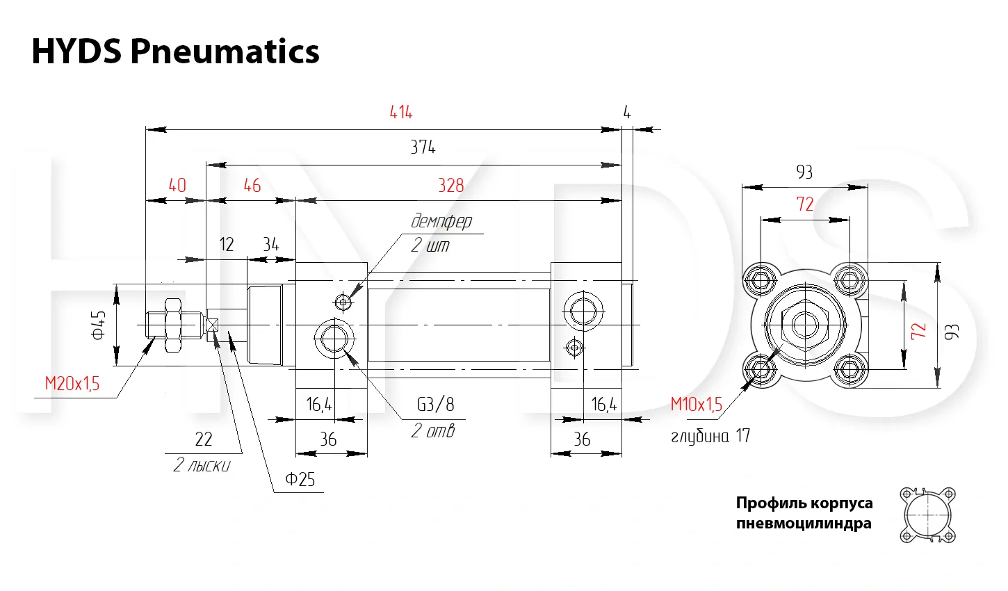 Красным выделены значения, на которые стоит обратить внимание при выборе пневмоцилиндра