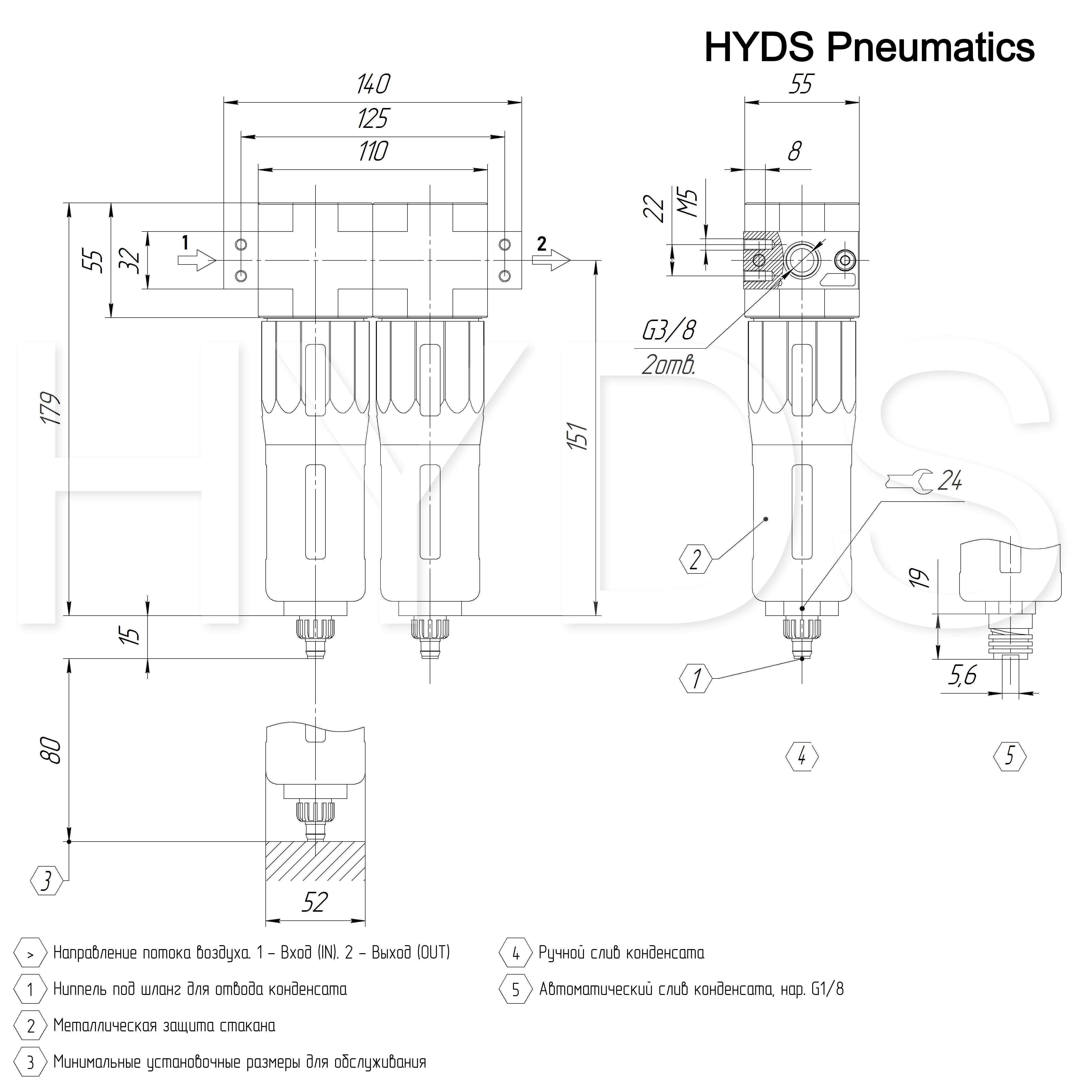 Сжатый воздух, отфильтрованный 5 мкм, содержание масла не более 1 мг/м3