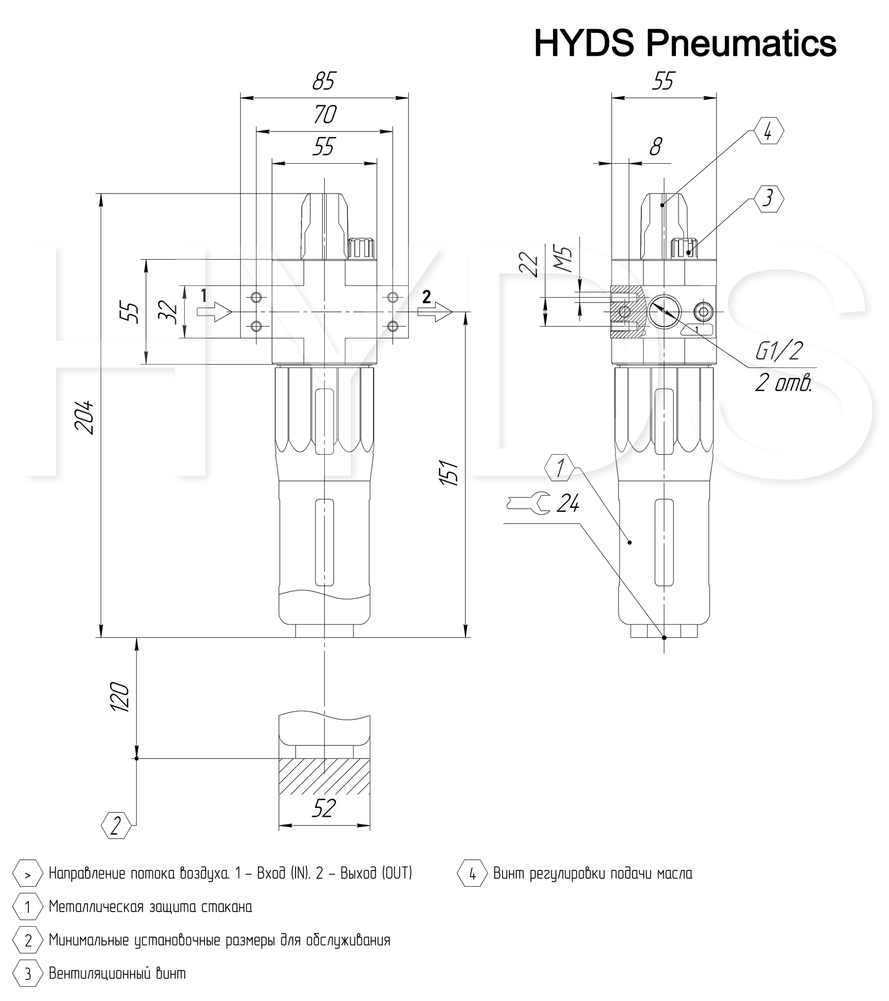 Рекомендуемое масло ISO VG 32. Начало распыления при 8 нл/мин