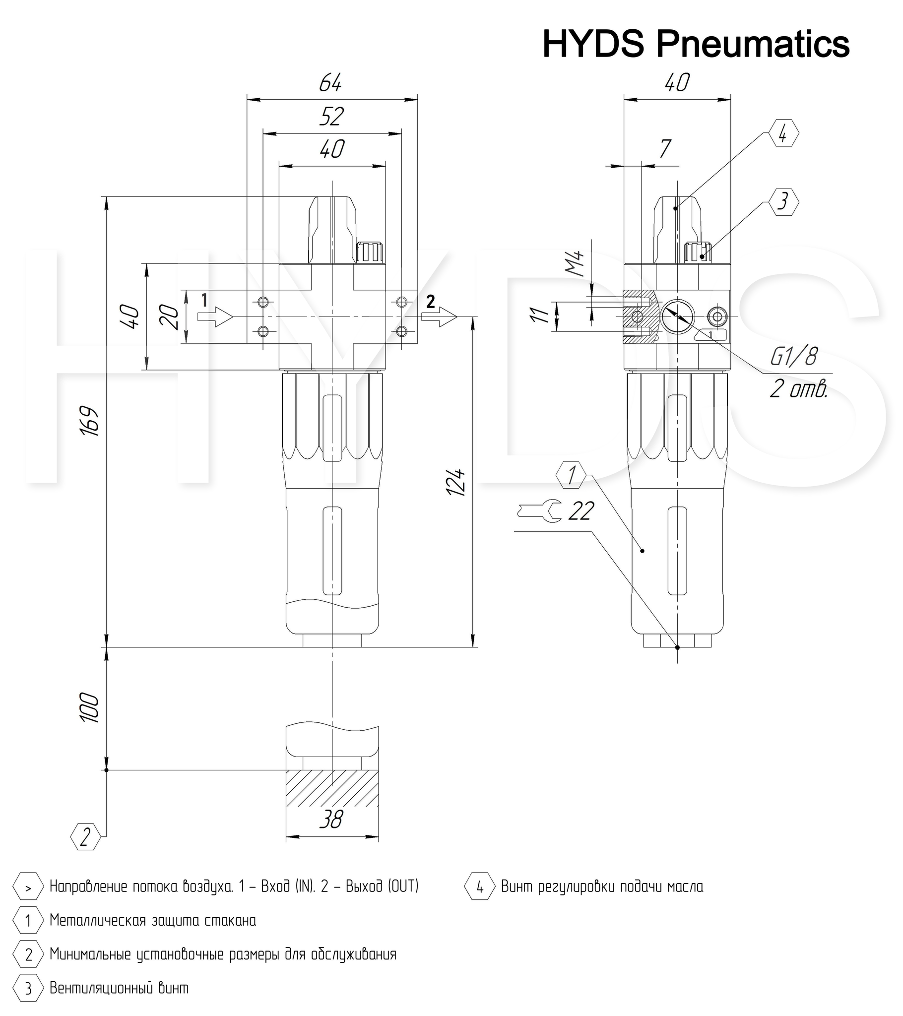 Рекомендуемое масло ISO VG 32. Начало распыления при 3 нл/мин
