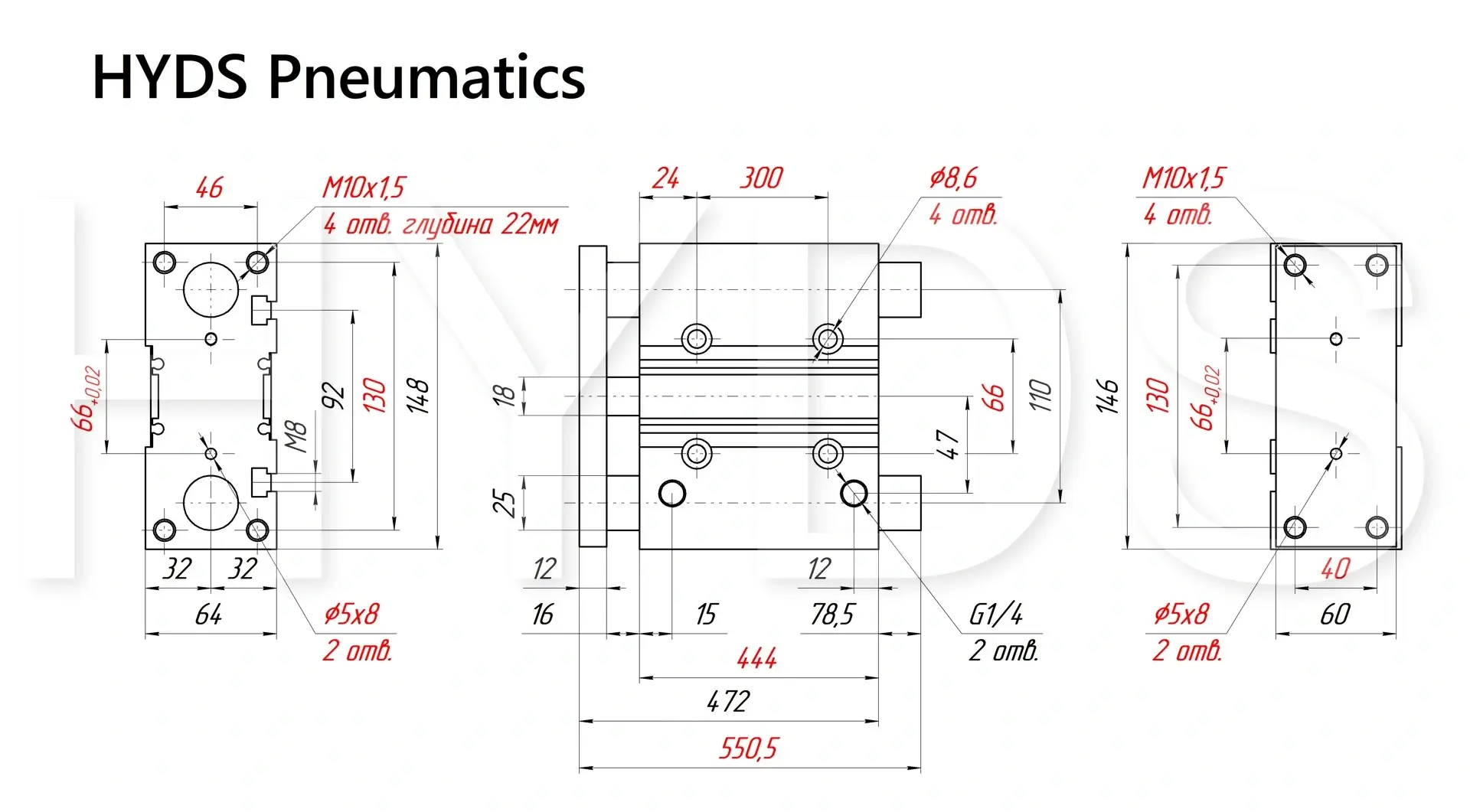 Плоский пневмоцилиндр с направляющей HYDS серии MGPM, артикул MGPM50TF-400Z с диаметром поршня 50 мм и длинной хода 400 мм, двухстороннего действия с односторонним штоком, используется для преобразования энергии сжатого воздуха в механическую работу. Теоретическое усилие цилиндра при 6 Бар на выдвижение: 1039,6 Н (106 КГ), на втягивание: 873,3 Н (89 КГ). Расход воздуха пневмоцилиндром при 6 Бар составляет: 6.48 Н/л за один цикл работы. Скорость движения штока без нагрузки: минимальная - 10 мм/сек, максимальная - 500 мм/сек.